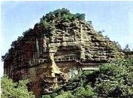 These grottoes are found on the precipices of Maiji Mountain thirty kilometers south of Tianshui County, Gansu Province. Maiji Mountain is a green and graceful peak in the western part of the grand Qinling Range. The grottoes were cut during a period of 1,500 years from the Later Qin Dynasty (384-417) up to the Qing Dynasty (1644-1911). During an earthquake in the seventh century, the cliff broke in two and the grottoes were thus divided into east and west sections. The 194 remaining grottoes today contain a total of seven thousand clay and stone statues and 1,300 square metres of mural paintings. The sculptures representing celestial figures portray them as real people, full of life and energy.